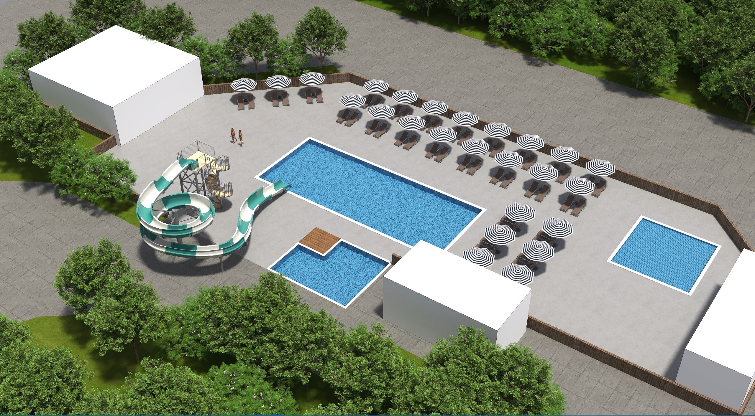 Die älteren Kinder können sich im 8 x 20 m großen und 1,40 m tiefen Hauptbecken vergnügen und es gibt eine Rutsche für sie, wenn sie noch nicht alt genug sind, um die großen Wasserrutschen zu benutzen.