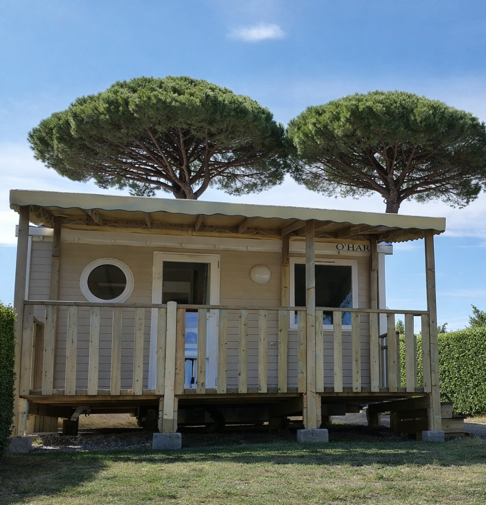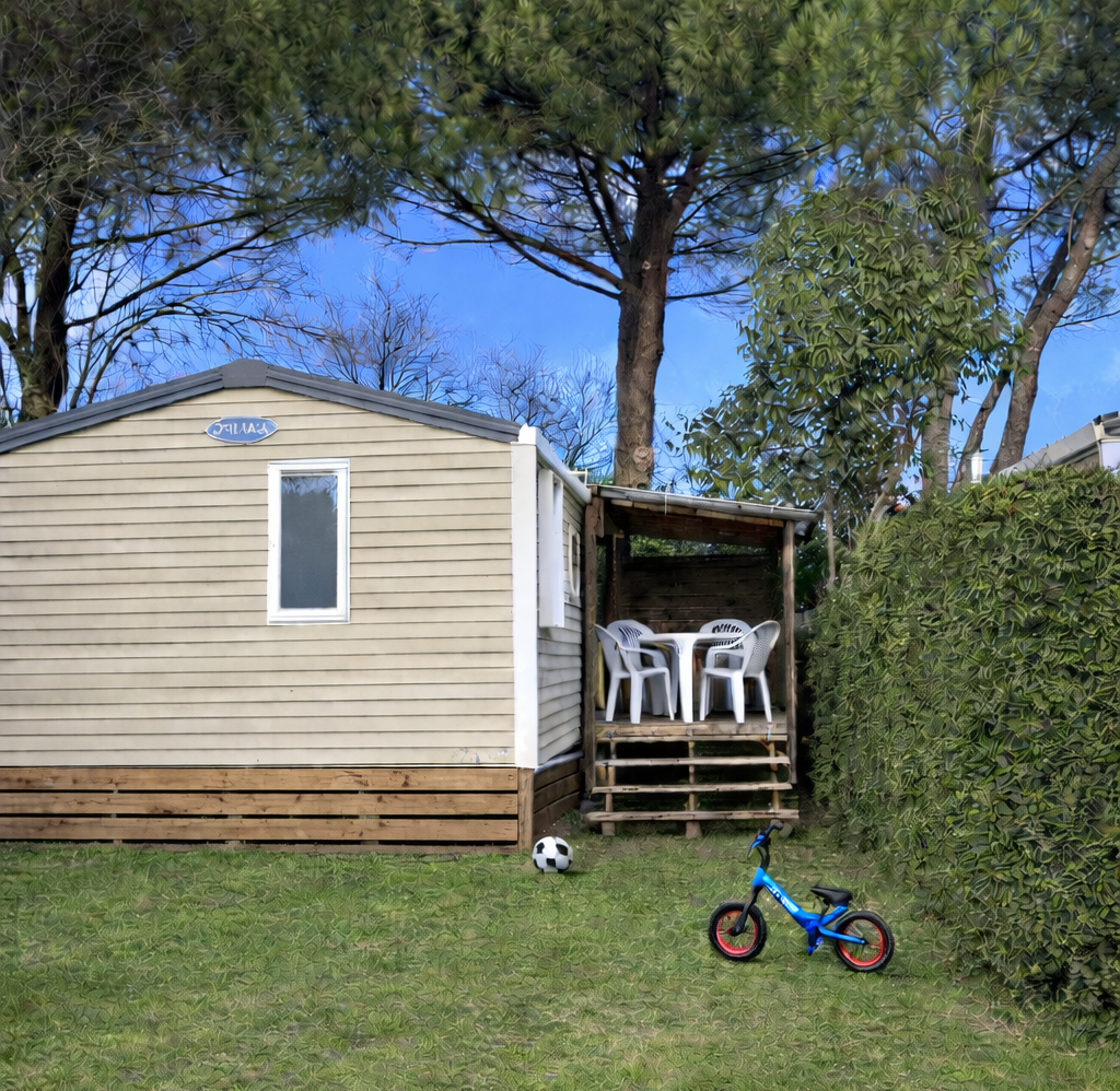 Mobilheim auf den Anhöhen des Campingplatzes gelegen.